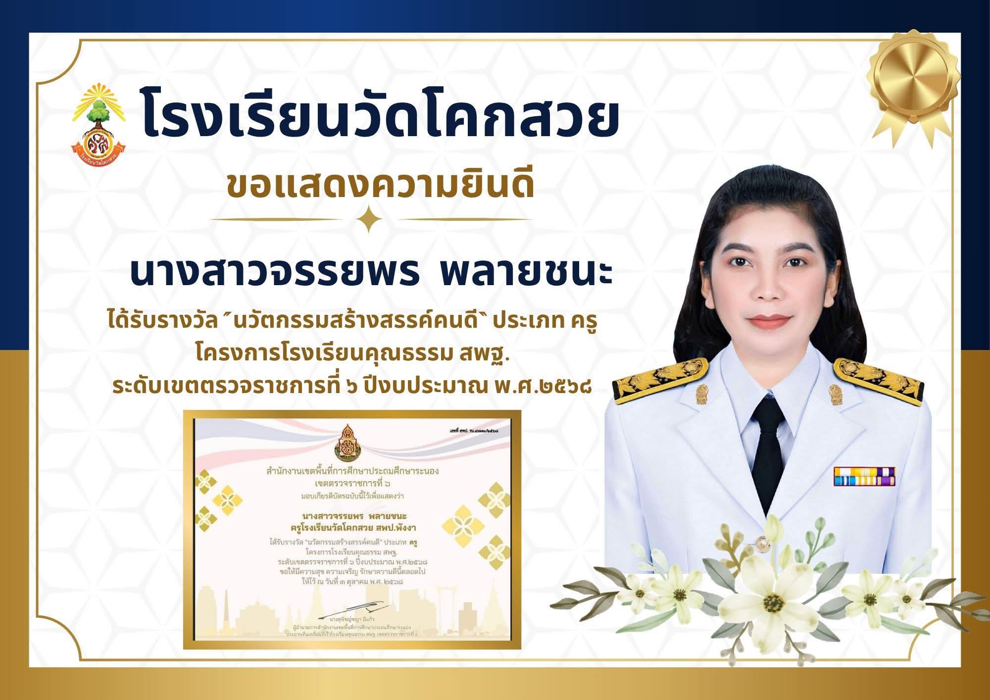 รางวัล “นวัตกรรมสร้างสรรค์คนดี” ประเภท ครู โครงการโรงเรียนคุณธรรม สพฐ.ระดับเขตตรวจราชการที่ ๖ ปีงบประมาณ พ.ศ.๒๕๖๘